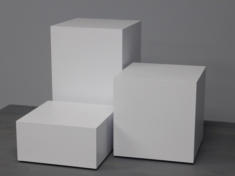 Ready to ship, 13.75″ x 13.75″ x 31.5″h this white laminate pedestal will elevate your product or art display in your retail space, home or office.