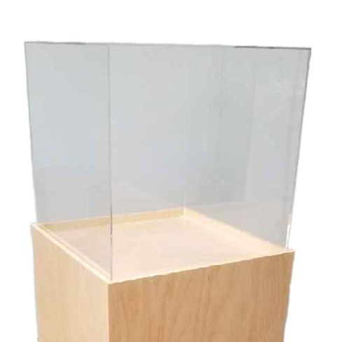 Ready to ship, 15″ x 15″ x 15″h this beautiful recessed maple pedestal will elevate your artwork. Perfect for displaying in your home or office. Acrylic Cover not included.